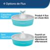 • OPTIONS DE DÉBIT DE L’EAU : Le papillon détachable crée 4 flux à écoulement libre auprès desquels votre animal peut boire ; possibilité de le retirer pour produire un flux silencieux et effervescent EAU