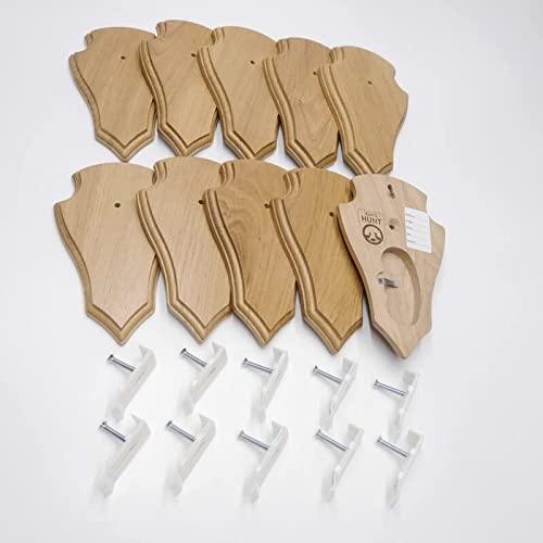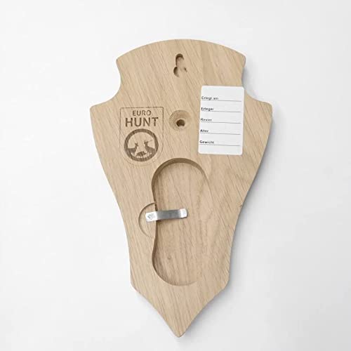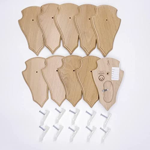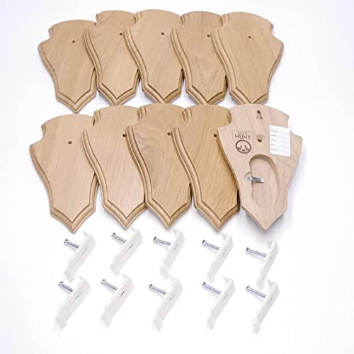 EUROHUNT REH Lot de 10 panneaux de trophée pointus en chêne clair AF 18,5 x 11 cm avec 10 pinces à cornes en plastique