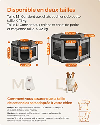 Feandrea Parc pour Chien en Tissu Oxford, Clôture Octogonale, Enclos, Taille M, 72 x 72 x 43 cm, Cadre en Tube PVC, Filet Respirant, Pochette de Rangement, Gris Foncé et Gris Clair PDC002G01