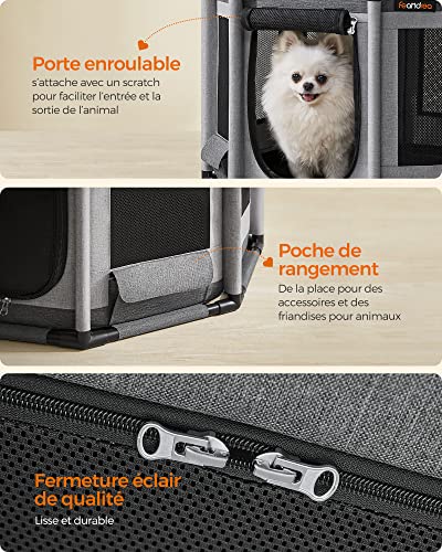 - [Large espace] Ce chenil de 72 x 72 x 43 cm convient aux chats et chiens de petite taille jusqu’à 11 kg comme le Yorkshire, le Poméranien, le Carlin, le Chihuahua, le Caniche nain, le Corgi, le Bouledogue français… Choisissez selon votre animal