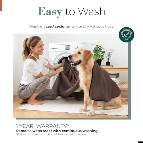 Housse de couverture imperméable 203,2 x 228,6 cm pour adultes, chiens, chats ou tout animal de compagnie – Couverture ou protègematelas 100 % étanche pour chien – Grande taille pour lit jumeau,